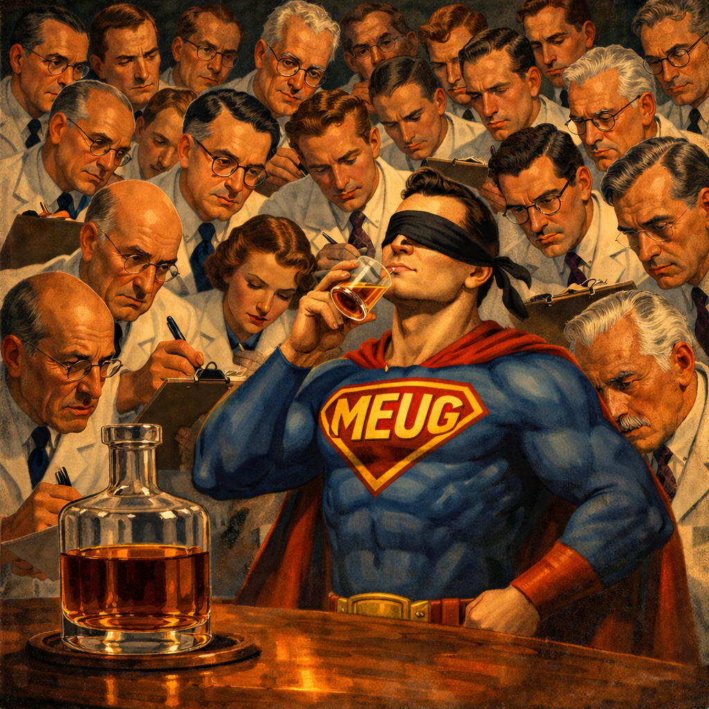De Meugman heeft de laatste jaren heel wat mensen onderworpen aan blinde tastings. Telkens ontsprong hij zelf de dans, als organisator. Tijd om het goed te maken met al die argeloze deelnemers, en meteen ook een stapje verder te gaan.