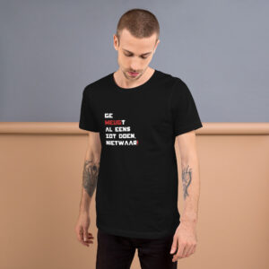 Ge Meugt Al Eens Zot Doen, Nietwaar T-shirt (uniseks)